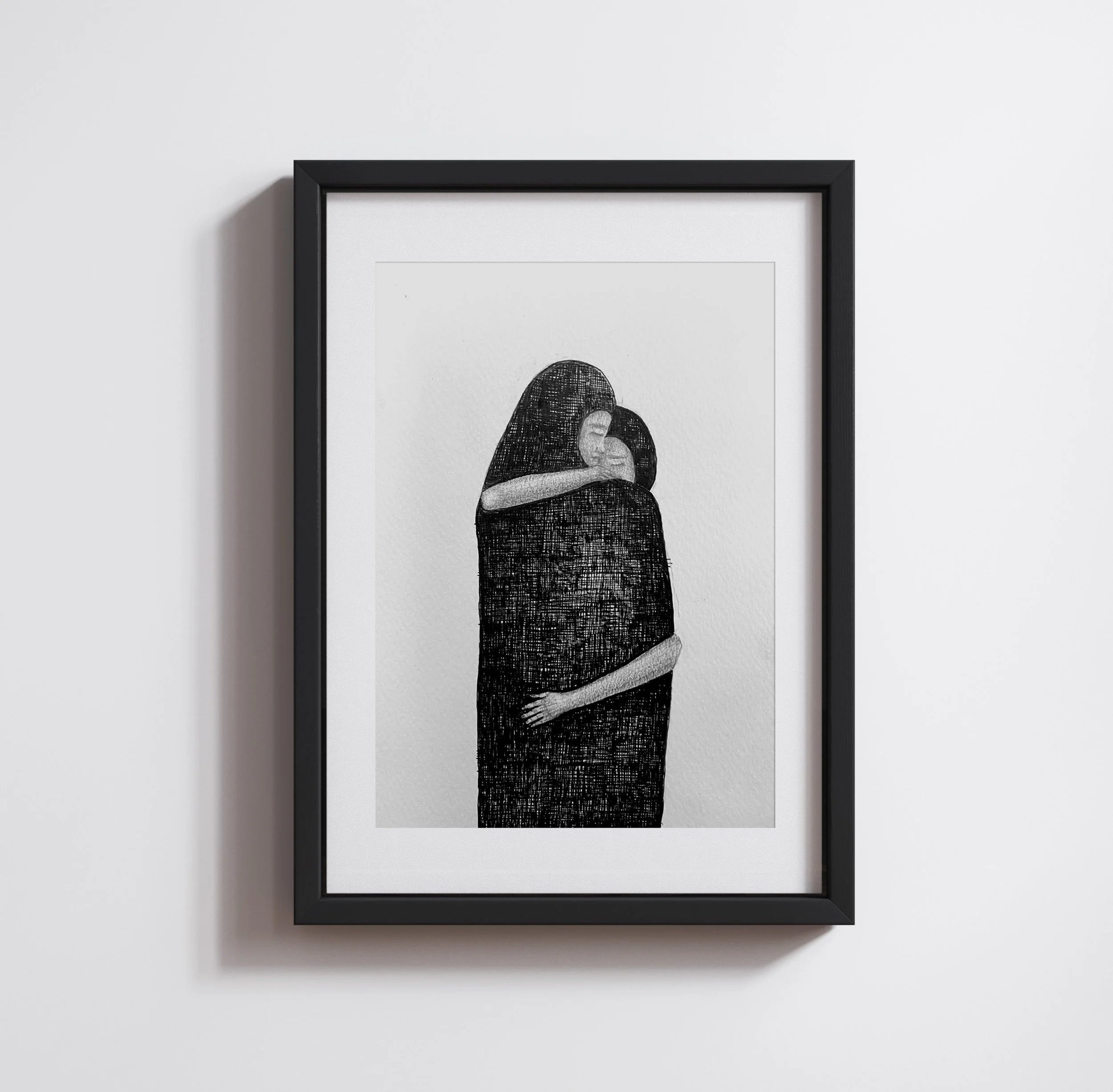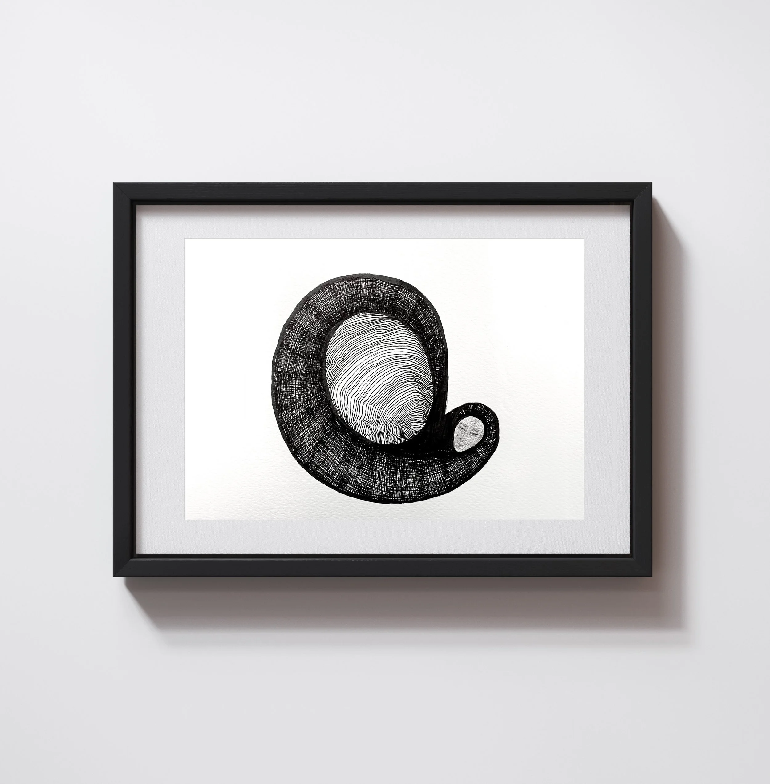 Albul hârtiei nu e un simplu fundal, ci un câmp activ, contrapunct al masei negre, ce amplifică senzația de izolare și introspecție, delimitând prin textura hârtiei semi-ciocan acel spațiu de vibrație interioară.